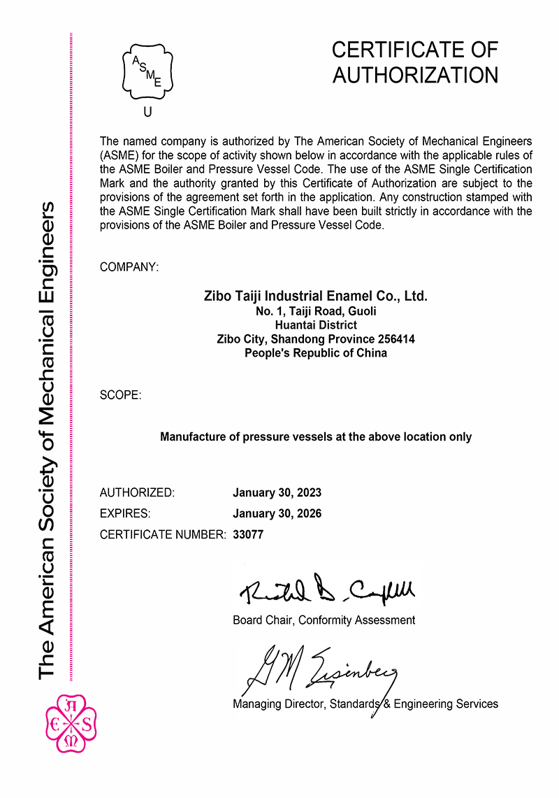 HOW TO CHOOSE淄博太極工業(yè)搪瓷有限公司專業(yè)制造搪玻璃設(shè)備、氟塑料設(shè)備及碳鋼、不銹鋼壓力容器的大型企業(yè)。現(xiàn)有員工1000余人,注冊資金11900萬元,占地600畝,生產(chǎn)車間19萬平米,凈資產(chǎn)超20億元。太極以人為本,單用于職工的居住生活投入已達3億,使工者有其房,家人生活及孩子....[查看更多]